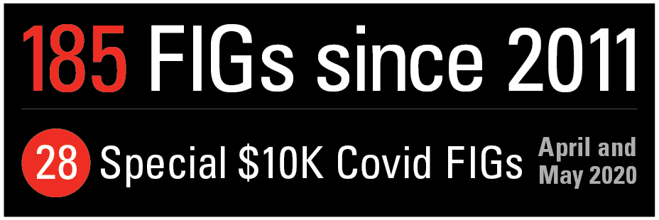 185 FIGs Since 2011. 28 Special $10k Covid FIGs in April and May 2020.